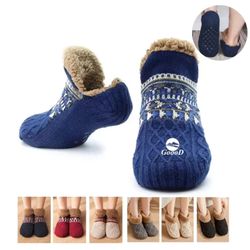 These Non-Slip Socks for adults have grips dotted at each sole of fuzzy anti-slip socks, offering excellent grip to prevent you from falling or losing balance. Our Winter Warm Socks are comfortable with a soft lining that provides enough warmth to wear comfortably, you can feel barefoot walking, fashionable, warm, and safe! These slipper cozy socks are elastic and fit most adults, they are easy to put on and take off, perfect for wearing indoors in winter. One-sizes Fits All!