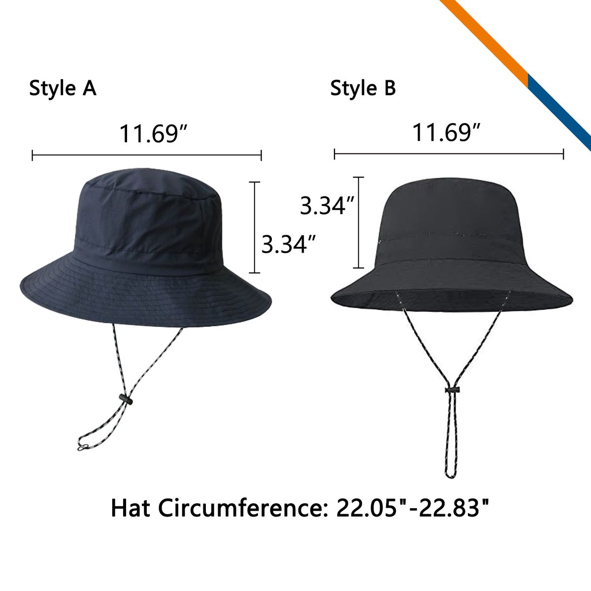 - Style A is normal fabric bucket hat, and style B is waterproof and quick-drying fabric bucket hat.